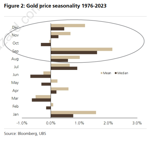 对于季节性因素,瑞银预计2024年三季度至2025年一季度这一时期,黄金实物需求将会回升。旺季期间,现货需求将会为黄金市场提供支撑,并为下一阶段金价上行提供良好基础。